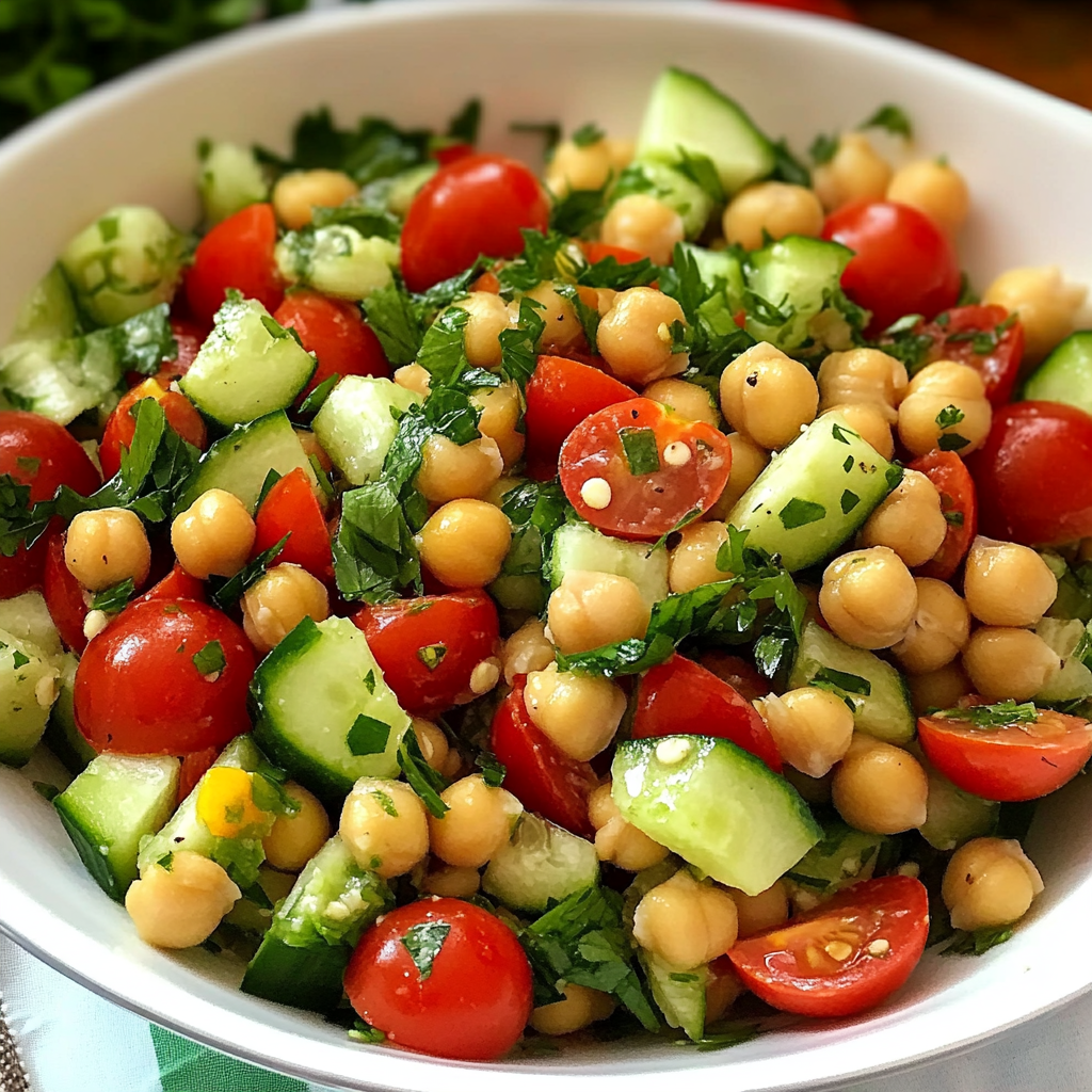 This Chickpea Salad with Cucumbers and Tomatoes is a vibrant and refreshing dish that perfectly captures the essence of summer. Quick to prepare, it’s ideal for lunch or as a delightful side dish at any barbecue or gathering. The combination of crunchy cucumbers, juicy tomatoes, and protein-packed chickpeas creates a satisfying meal that’s not only healthy but also bursting with flavor.