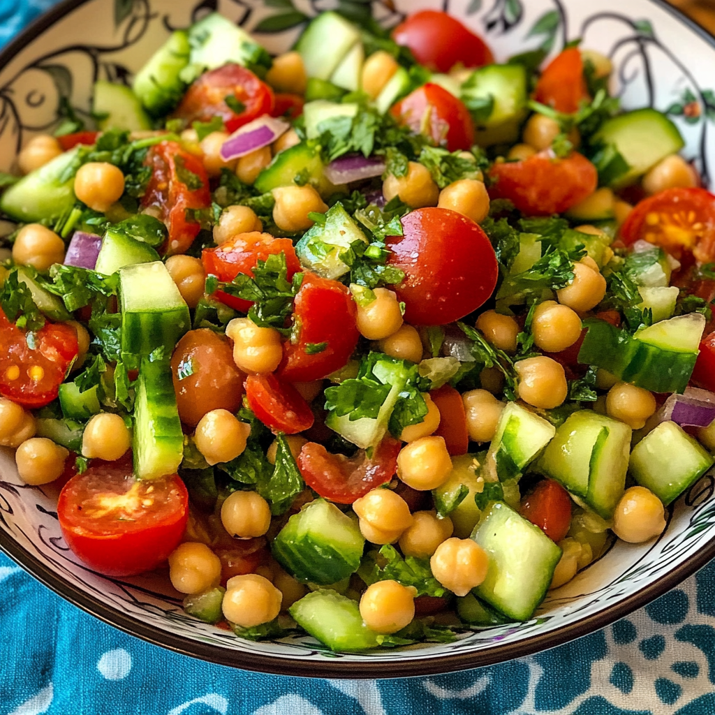 • Healthy Ingredients: Packed with fresh vegetables and chickpeas, this salad is nutritious and filling.