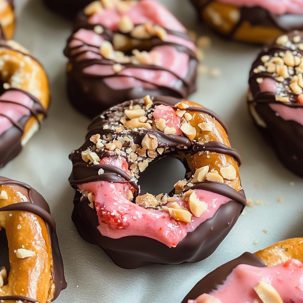 Chocolate Dipped Strawberry Yogurt Pretzel Bites