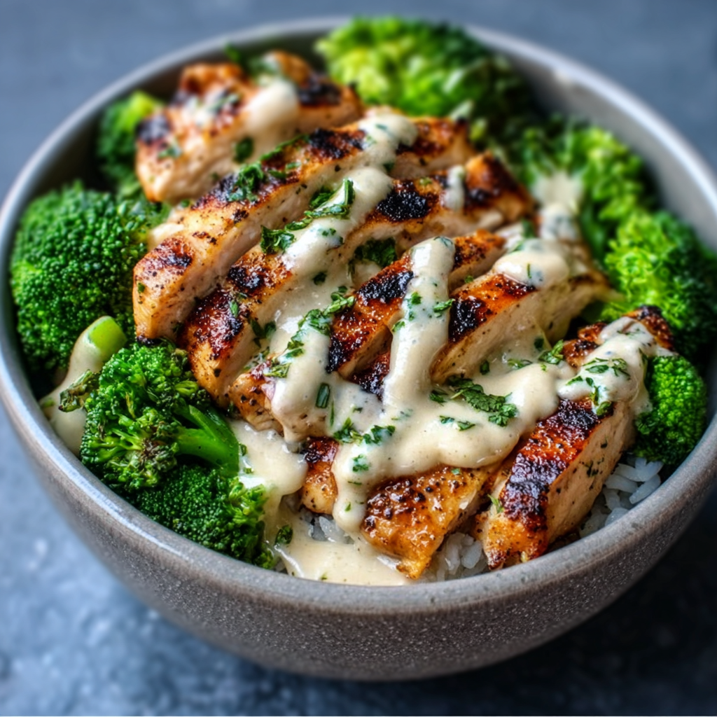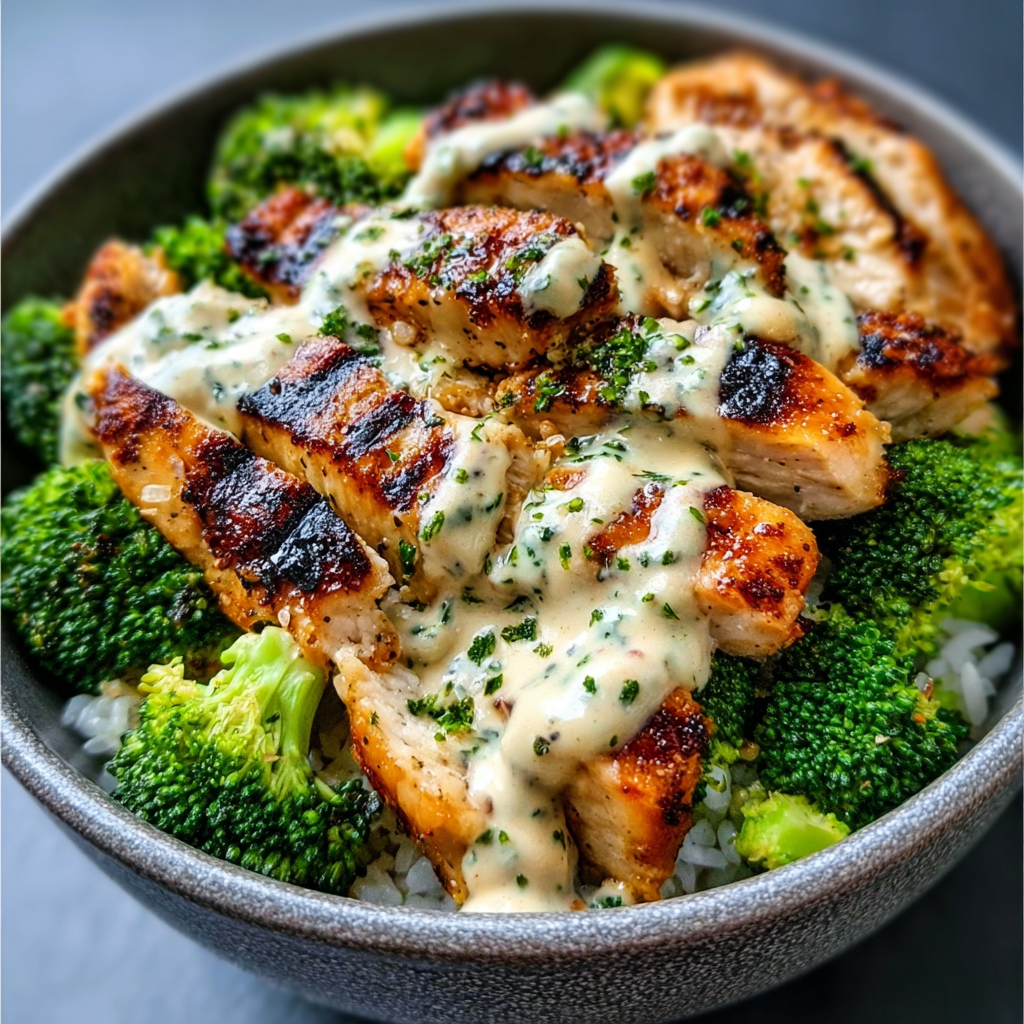 Grilled Chicken & Broccoli Bowls With Creamy Garlic Sauce Delight Your Taste Buds! This healthy meal combines tender grilled chicken and vibrant broccoli, all drizzled with a rich creamy garlic sauce. Perfect for busy weeknights or meal prep, this dish is not only easy to make but also packed with flavor. Enjoy it as a quick lunch, a satisfying dinner, or a nutritious addition to your meal rotation.
