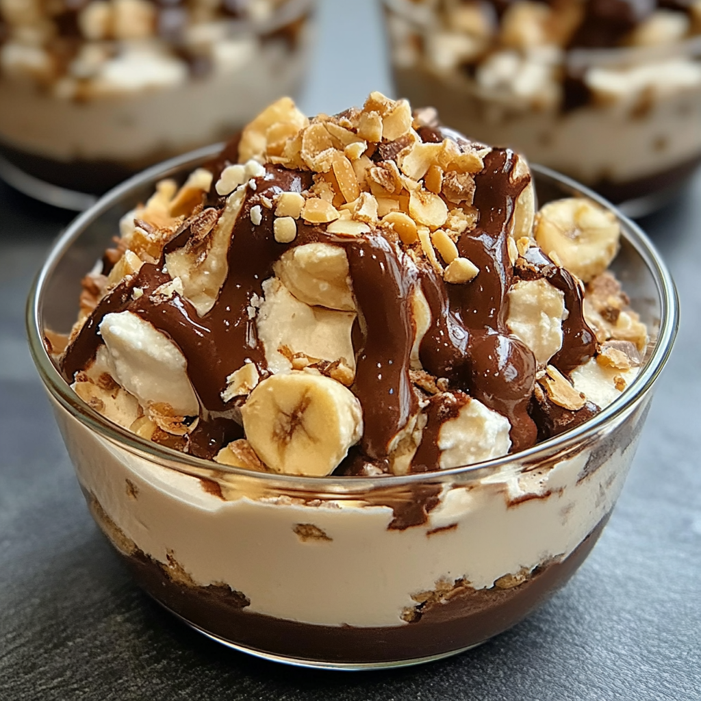 - Before serving, top with additional chocolate chips, chopped peanuts, a drizzle of peanut butter, and a sprinkle of sea salt if desired. Enjoy!