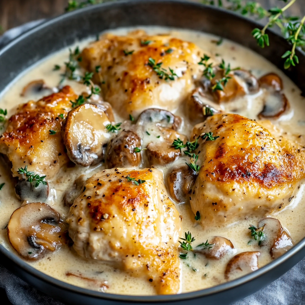Return chicken to pan to warm through before serving. Garnish with fresh thyme sprigs and serve over your favorite pasta for a complete meal.