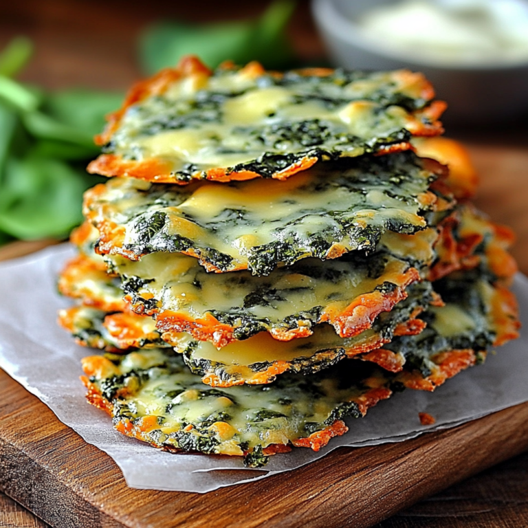 These Spinach Cheese Crisps – The Best Cheesy Low-Carb Snack are a delightful combination of crispy texture and cheesy flavor. Perfect for various occasions like parties, movie nights, or as a healthy snack option, these bites are packed with nutrients from fresh spinach while being incredibly easy to prepare. Enjoy the rich blend of mozzarella, parmesan, and cream cheese that makes each crisp irresistible!