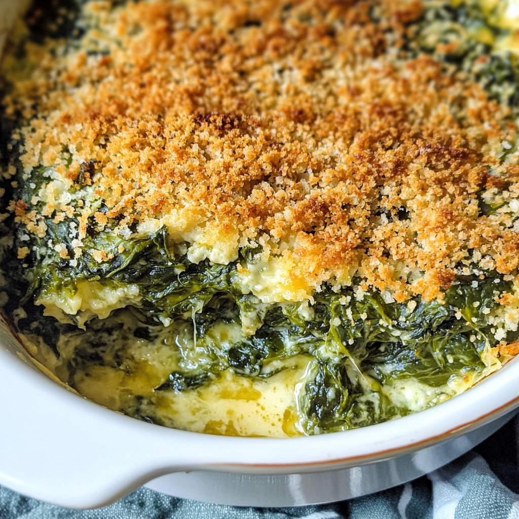 Spinach Rockefeller Casserole is a delightful dish that combines creamy spinach with a crispy, golden topping. This recipe is perfect for holiday gatherings or family dinners, offering a rich flavor that pairs wonderfully with beef or lamb. The blend of simple ingredients creates an elegant side dish that everyone will love.