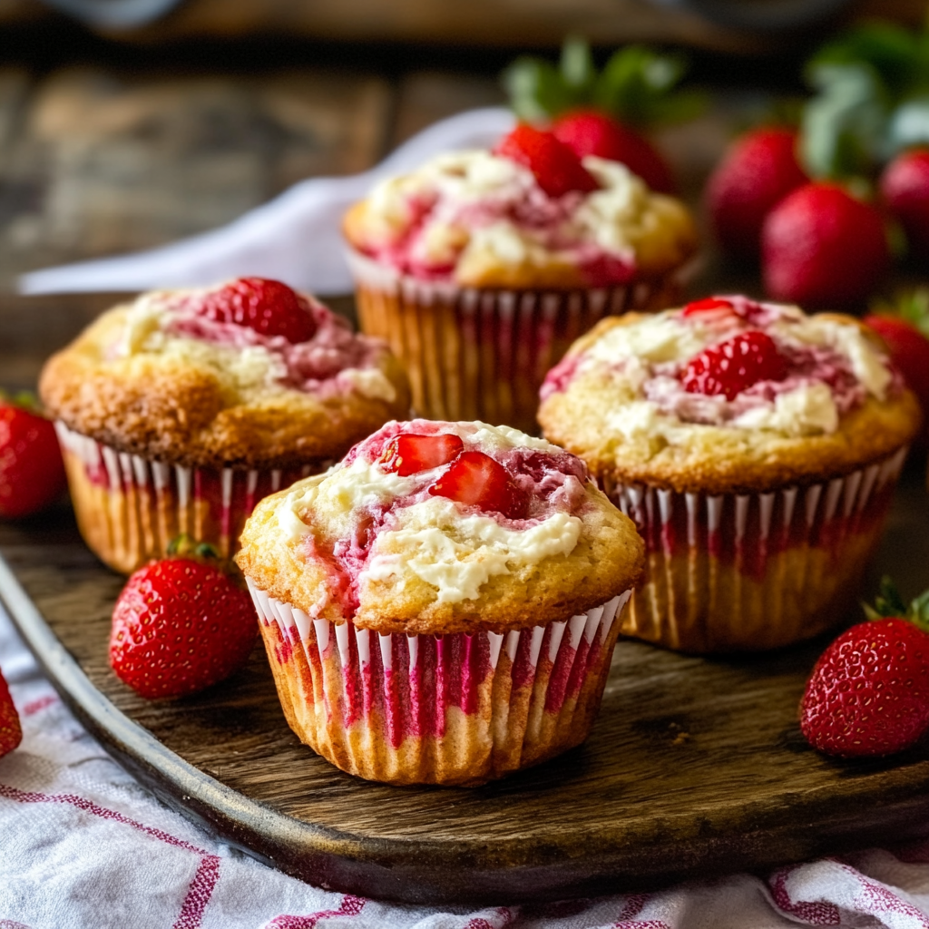 These Strawberry Cream Cheese Breakfast Muffins with Fresh Strawberries are soft, fluffy, and filled with a creamy center that bursts with fresh strawberries. Perfect for breakfast, brunch, or a quick snack, these muffins are easy to make at home and taste just like your favorite bakery treats. Their delightful flavor and texture make them a sure hit for any occasion.