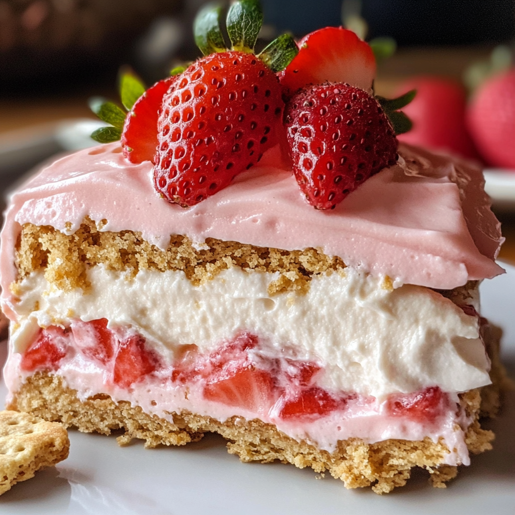 Indulge in the delightful freshness of Strawberry Eclair Cake, an easy and refreshing no-bake dessert that layers creamy cheesecake pudding, crispy graham crackers, and luscious fresh strawberries. This stunning treat is perfect for any occasion, from casual family dinners to festive gatherings.
